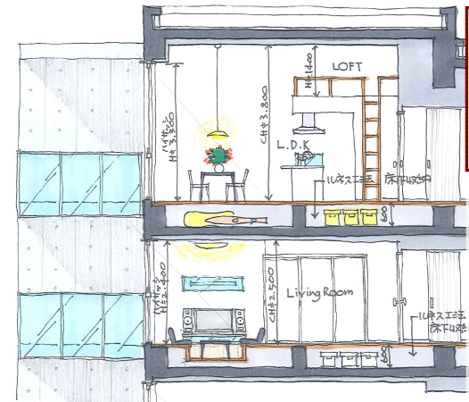 約72㎡が3400万円台から、ということでかなり手の届きやすい価格帯だと思います。インフィル代1000万円としても5000万円以内に抑えられそうですね。