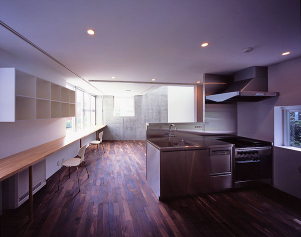 アーキネットさんのホームページを見ると、成城2丁目テラスという名称でした。「山嵜雅雄建築研究室」の設計です。