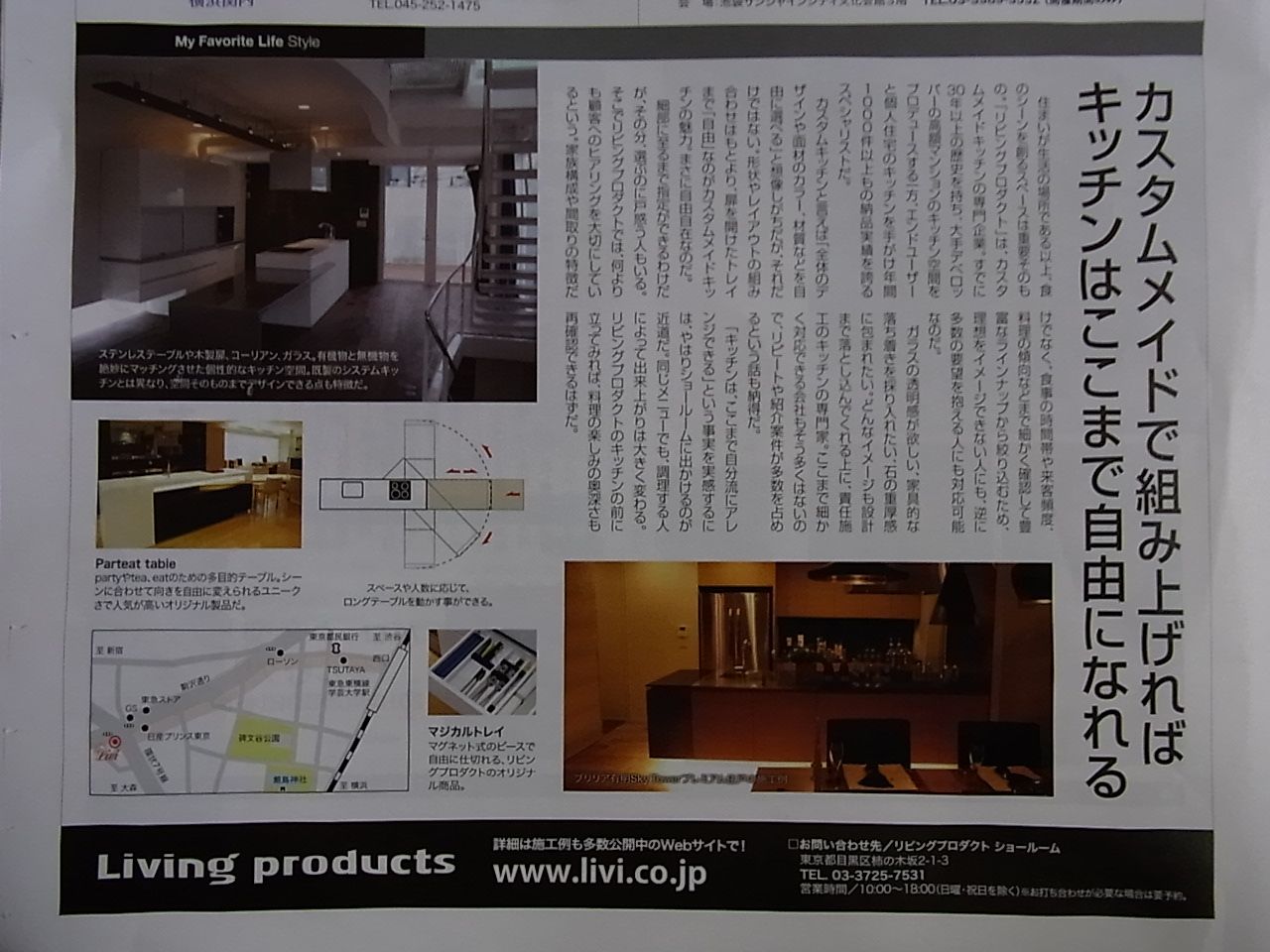 そんな中、BIZ STYLEという日経に入っていた広告に「リビングプロダクト」というキッチンメーカーが載っていました。