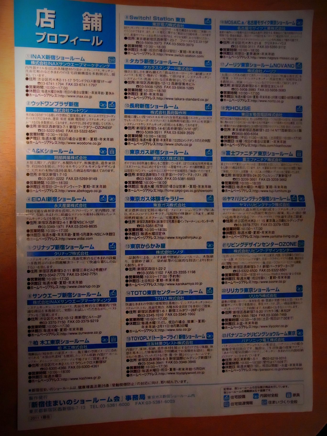 ショールームについては、私がコーポラ設計中に利用したショールームは新宿中心ですが、ある時「住まいのショールーム会」というチラシをもらいました。