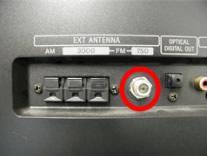そして、FMチューナーに75Ωの同軸ケーブルのインターフェースが備わっていること。AVアンプとか高めのコンポであれば大体備わっているかと思います。普通はここにFMラジオアンテナを接続していると思います。