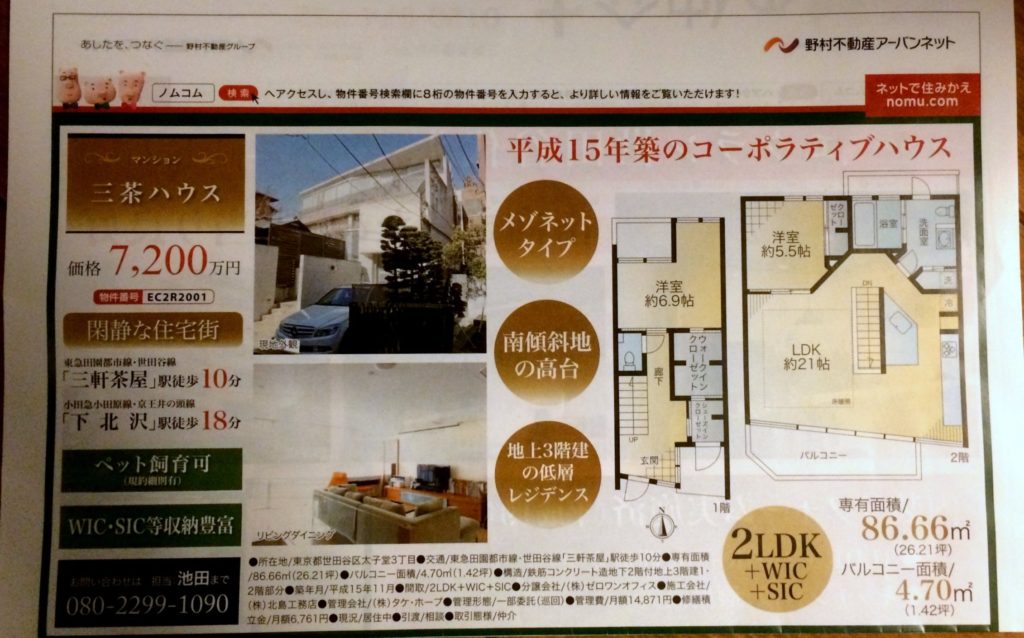 ゼロワンオフィスさんが手がけたコーポラティブハウス、「三茶ハウス」が売りに出ていました。